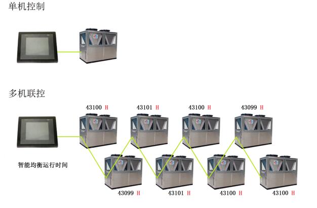 产品简介 模块机组采用模块化控制技术,将多台 单元机组组合成一个模块进行综合控制。 由一台主机控制多台从机运行, 一个控制屏集中查看、控制多台单元机组> 运行。也可实现每台单元机组独立运行。 产品特点 模块中的每台单元机组冷媒及水路独 立,通过单元机组运行数量,调节整体运行 负荷,当某台单元机组出现故障时,其它 单元机组可正常运转,不受影响。 机组采用高效换热器,低能耗风机, 和品牌压缩机。可根据客户要求集成水泵、 过滤器等水路系统配件。 自动控制 采用微电脑控制系统,具有多种 保护功能及智能的负载控制,操作简便。 机组具有压缩机、风机、水流量、 制冷系统高低压、水温、电源等多重保护。 并且可选西门子PLC 控制器,实现 ModBus RTU、TCP 或者OPC通讯。 设备类型 设备类型含有风冷模块、 水冷模块、风冷热泵模块、 水源热泵模块、低环温热水模块、 低环温热泵模块、冷热能(三连供模块) 非标订制 除标准规格外,还可根据用户要求 订做热回收模块、特殊电压模块、 变频模块等各类非标机组。 |